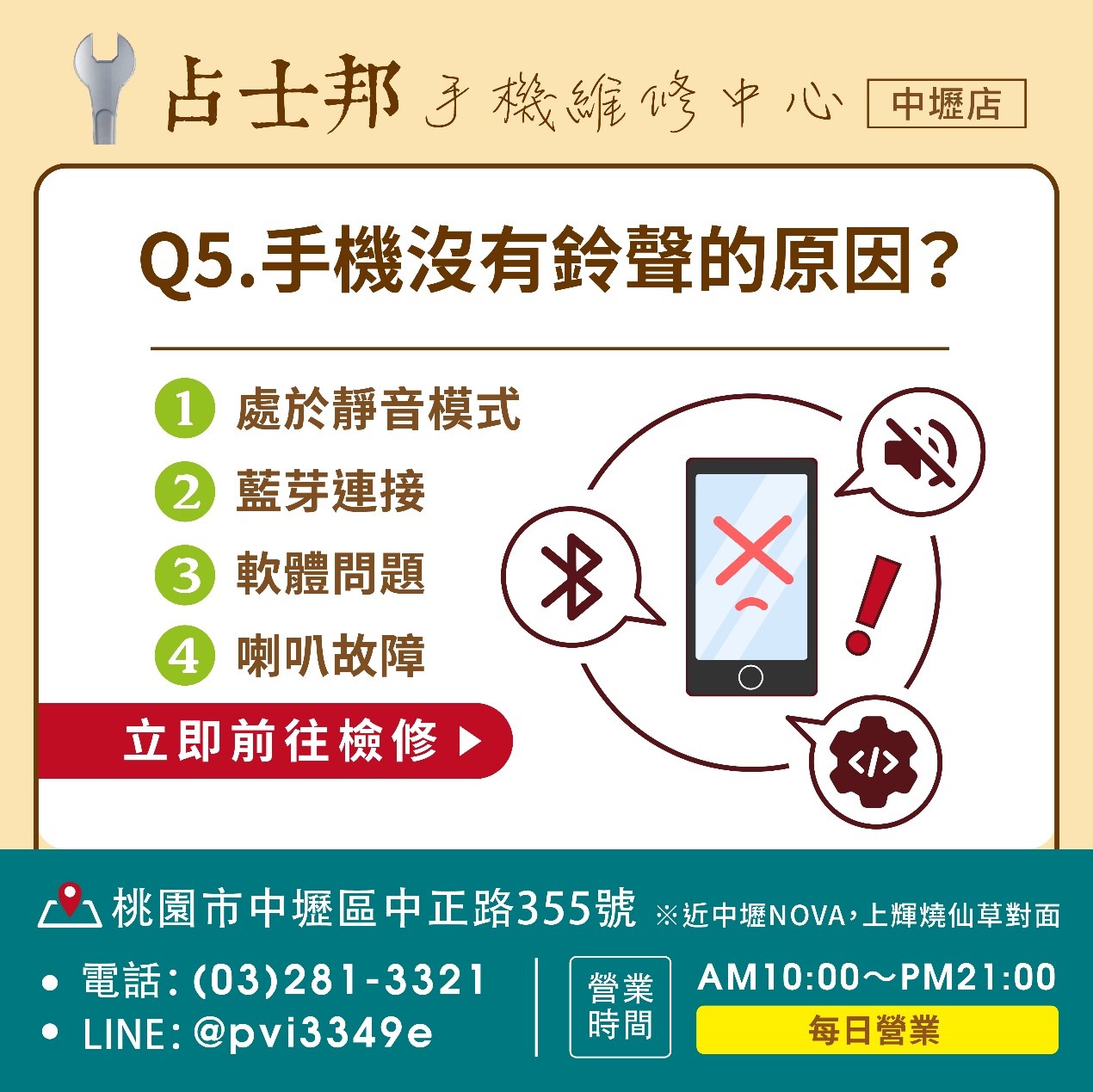 *如果您遇到手機鈴聲故障相關問題,歡迎您來電占士邦手機維修(中壢店)詢問或是線上客服。我們有專業人士為您解答!!