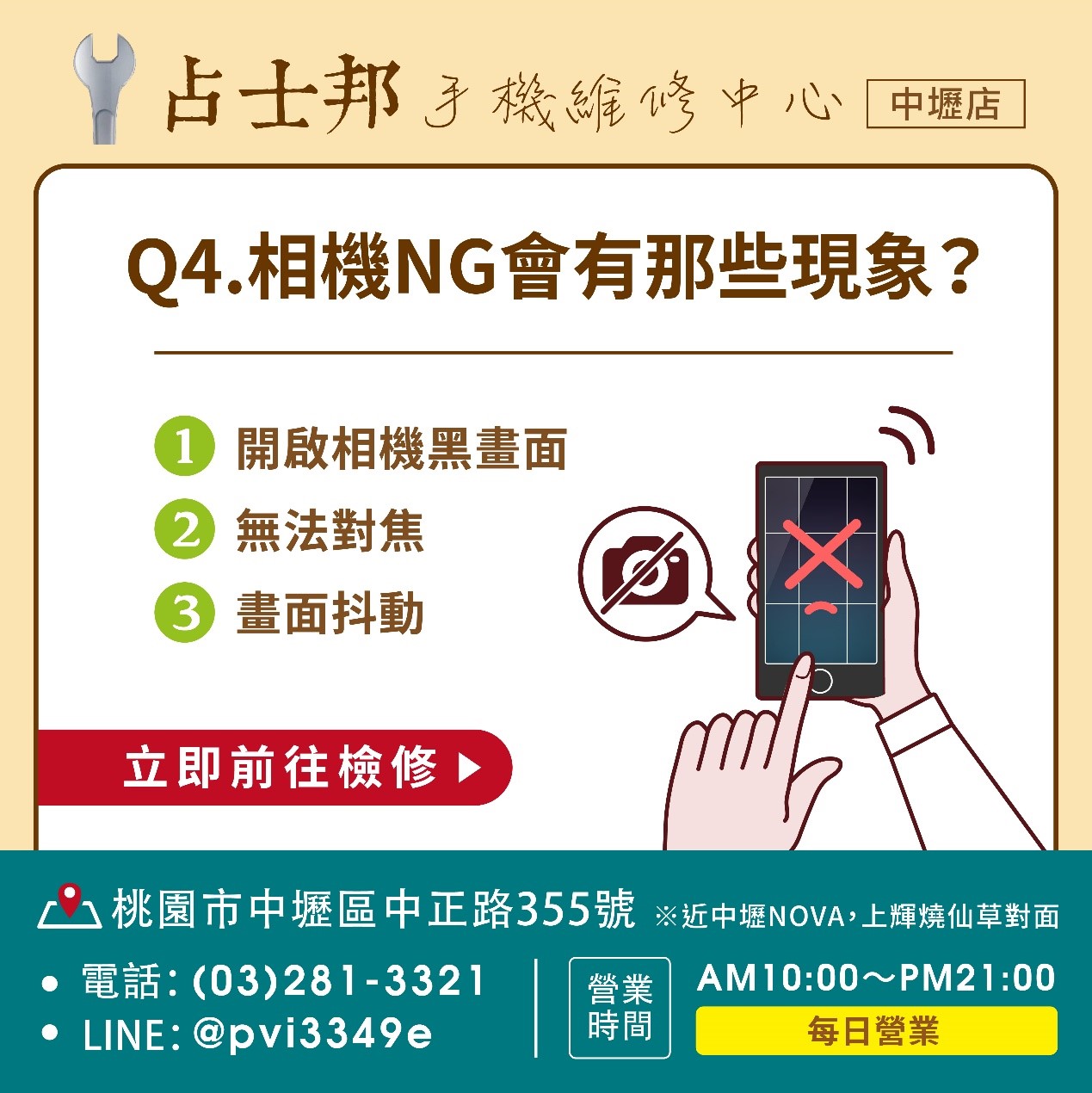 *如果您遇到手機相機故障相關問題,歡迎您來電占士邦手機維修(中壢店)詢問或是線上客服。我們有專業人士為您解答!!