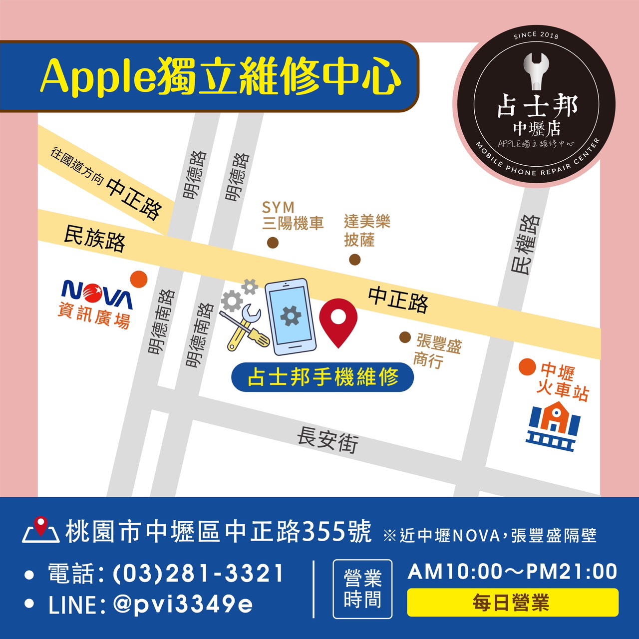 門市地址:桃園市中壢區中正路355號(近中壢Nova廣場、美食名店張豐盛商行)
